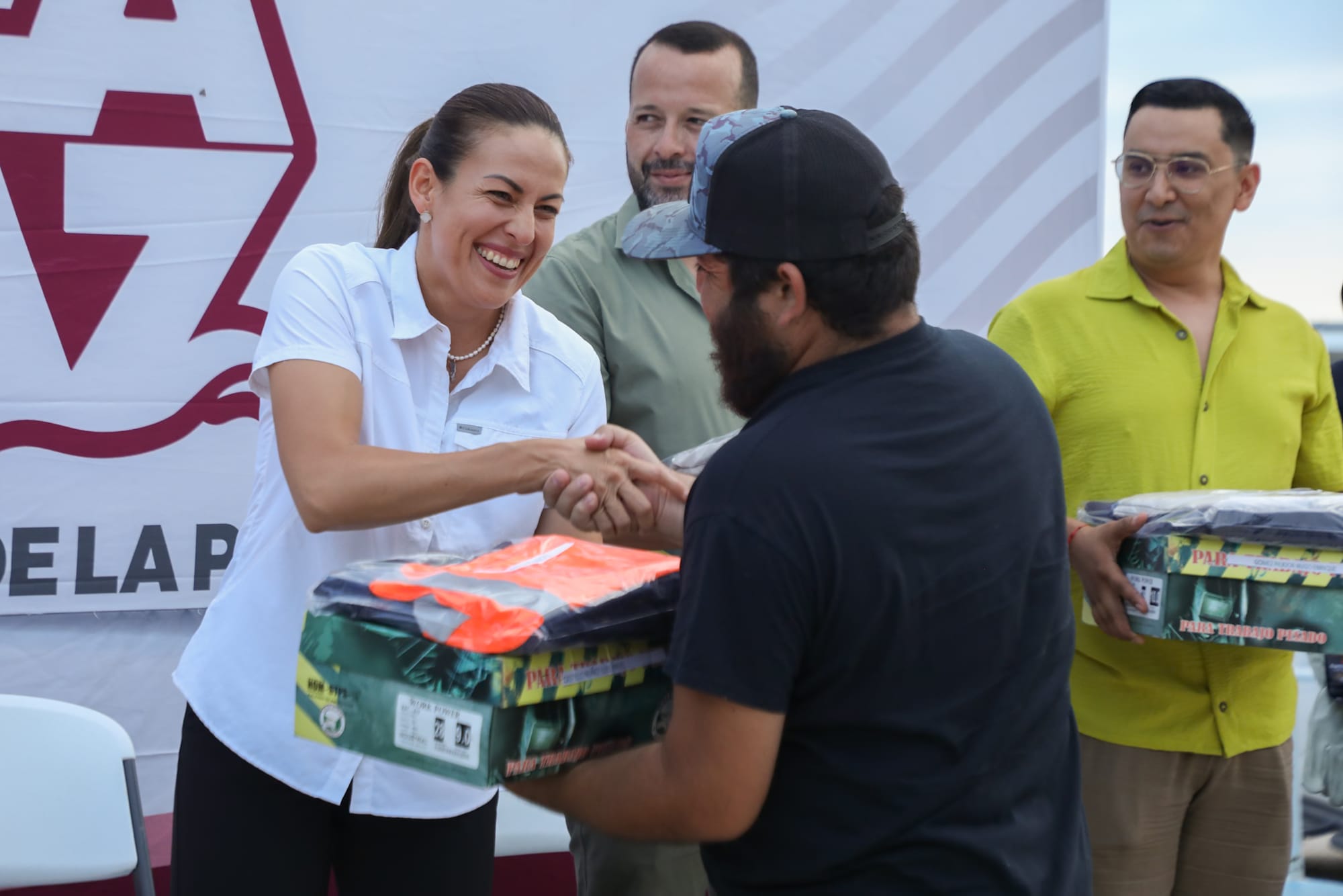Con la finalidad de reforzar las labores diarias que realiza el personal de la Dirección General de Sustentabilidad y Manejo de Residuos, la Alcaldesa de La Paz, Milena Quiroga Romero, encabezó la ceremonia de entrega de uniformes con una inversión de $886,793 pesos, acto que tuvo lugar en la explanada de Palacio Municipal.