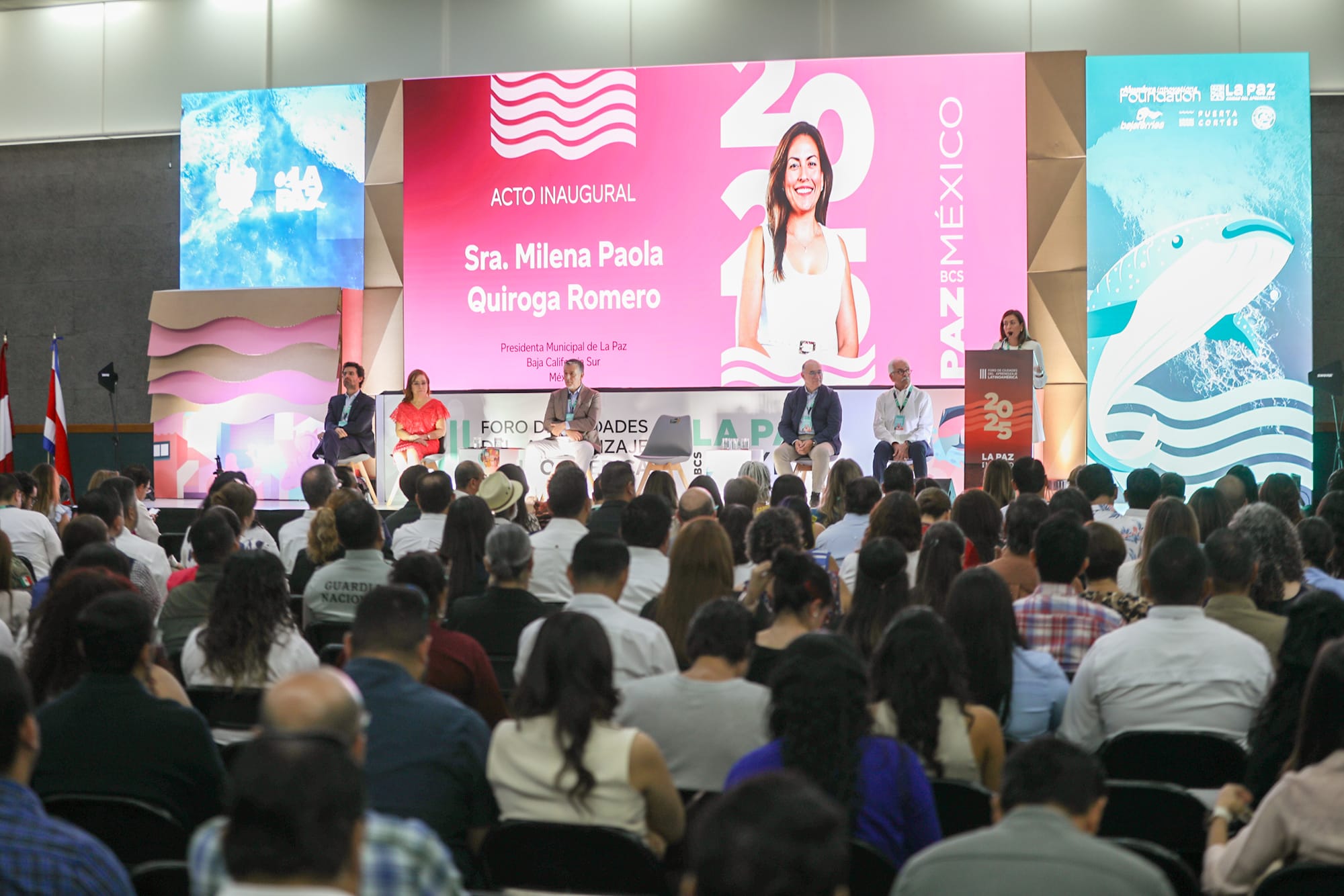En el acto inaugural se contó con la intervención de Raúl Valdés Cotera, Coordinador de la Red Mundial de Ciudades del Aprendizaje UNESCO; Enrique Galindo Ceballos, Vicepresidente de la Red de Ciudades del Aprendizaje LATAM; y Sara Díaz Castro, Directora del Consejo Sudcaliforniano de Ciencia y Tecnología, en representación del Gobernador de Baja California Sur.