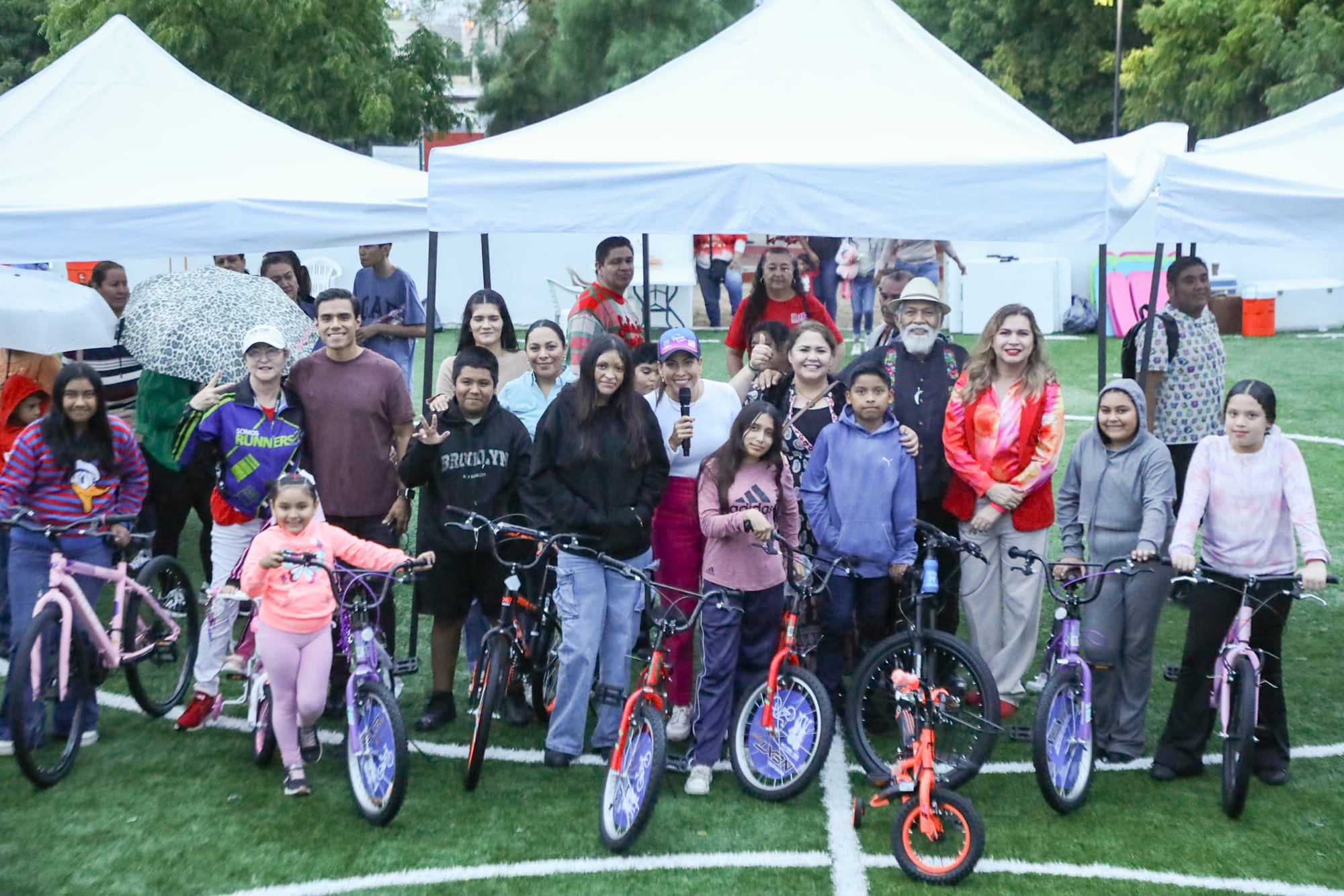 Acompañada por regidores, diputados y colaboradores del Ayuntamiento, la alcaldesa convivió con las familias y, como parte de la tradición, se llevó a cabo la rifa de juguetes y entrega de bolsitas de dulces.