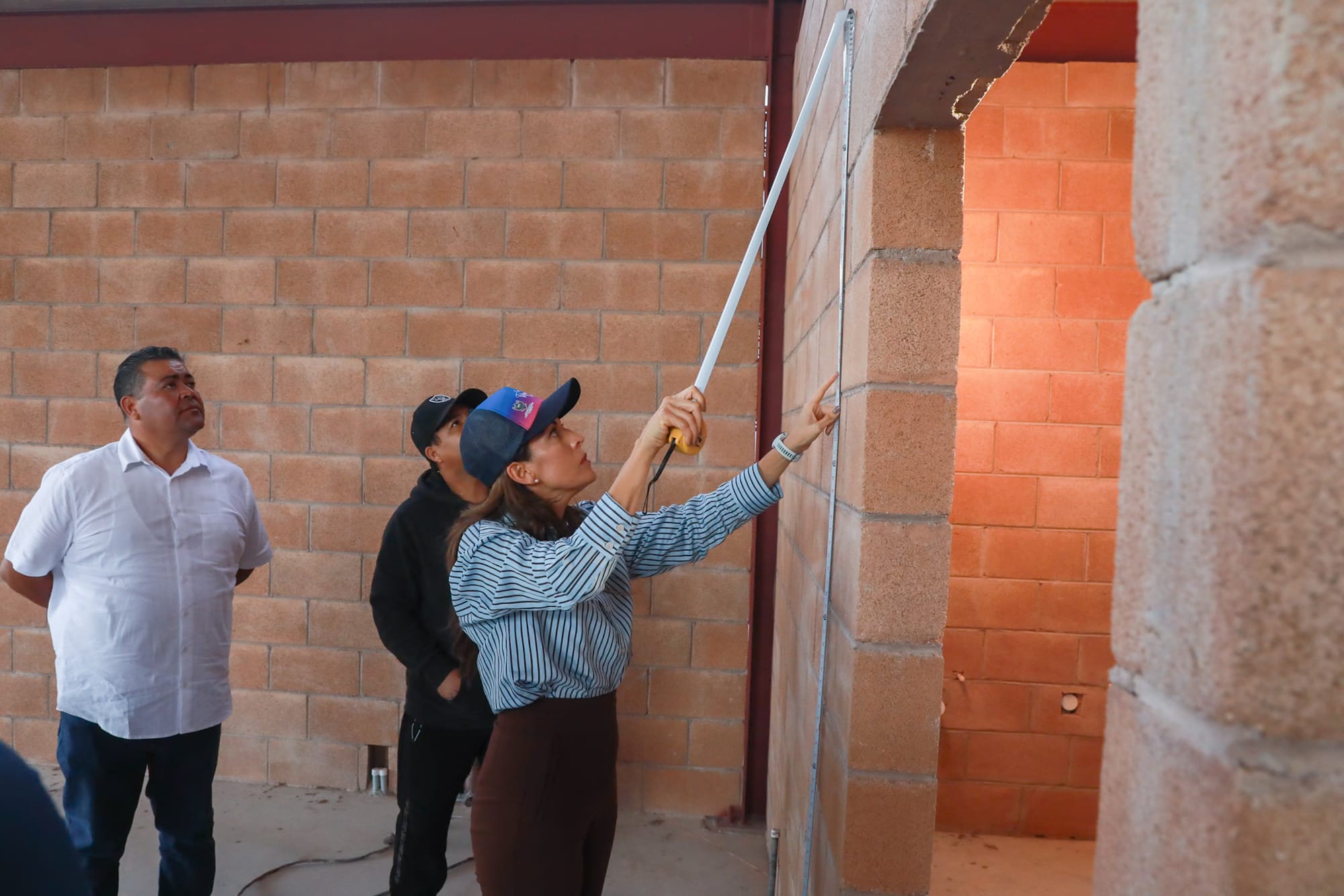 Acompañada por Kenia Selene Cervantes Villegas, directora de Gestión Integral de la Ciudad y Héctor Germán Juárez Ocampo, director de Obras Públicas, constató que el gimnasio de box, que formará parte de la red de Centros Impulso, registra un 80% de avance, encontrándose en su etapa final.
